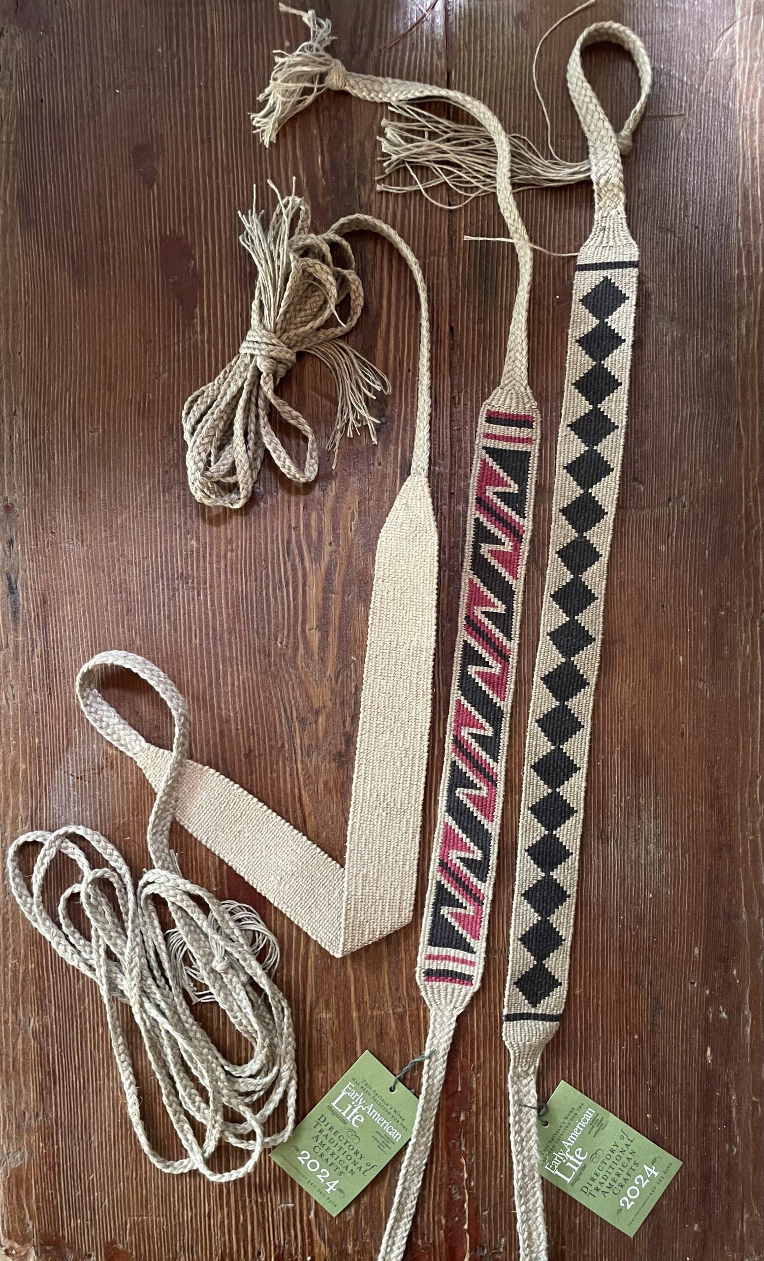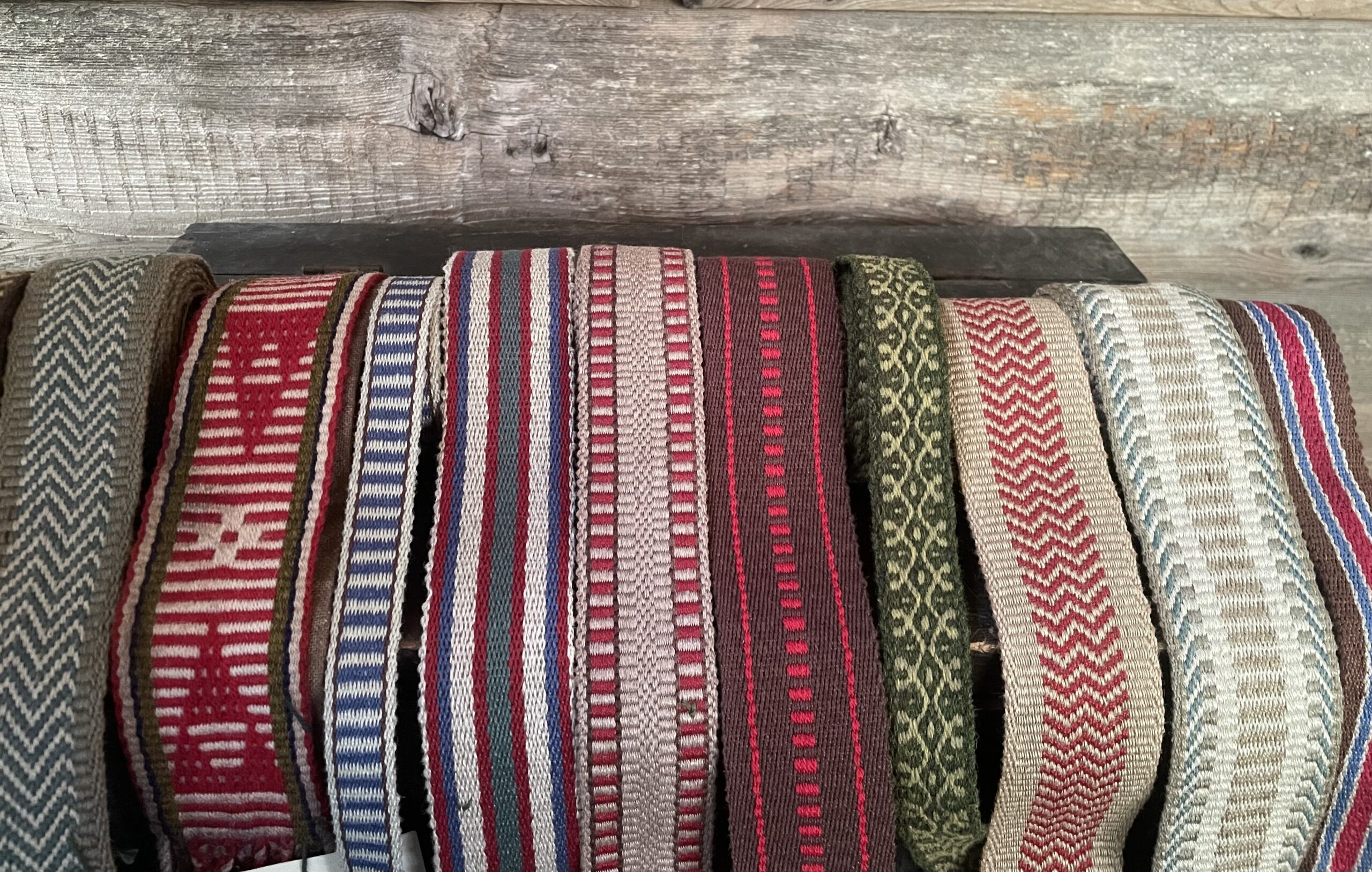 Strapping: Reproduction 18-20th century strapping is a highly durable handwoven fabric used to carry, tie or secure objects. Historically these were used in military belts, sword shoulder belts, horse girths, and sashes.